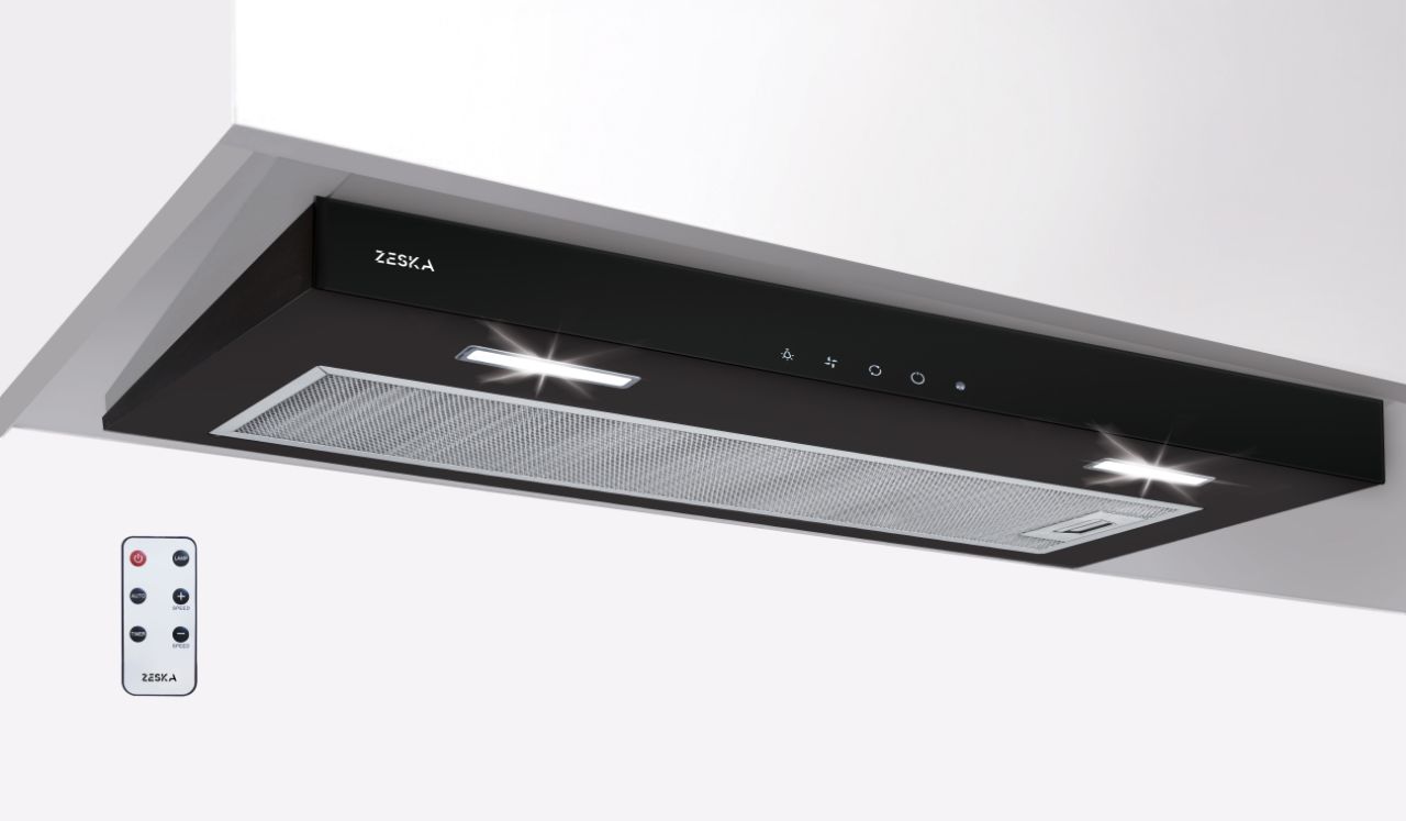 هود مخفی لمسی و ریموت کنترل از راه دور دارای موتور فلزی چهار دور فیلتر الومینیومی 3 لایه قابل شست و شو دارای 24 ماه ضمانت شرکتی زسکا در صورت نصب توسط سرویسکاران شرکت زسکا